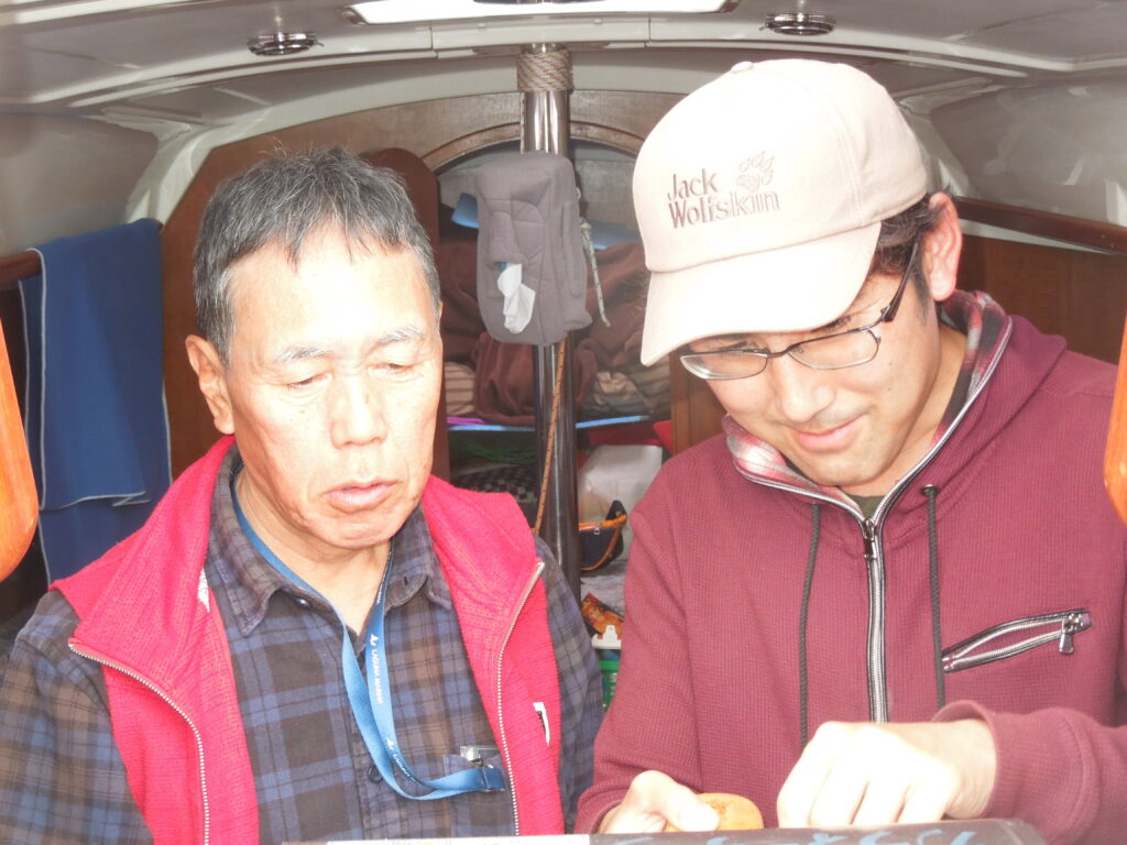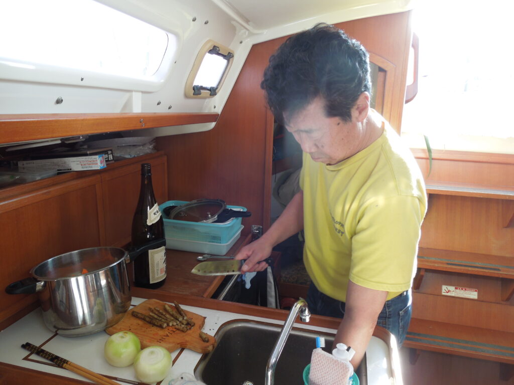 2023年6月13日 梅ちゃんの追悼クルージングでお線香とビールを持って出港した。風は23ノットMAX。 天気は晴れ時々曇り。メンバーは田中さん、バラストさん、小出君、安藤、ショー君、私加藤です。三河湾のちょうど真ん中辺りで11時過ぎに線香に火を点けてビールと一緒に海に流して梅ちゃんに挨拶をしました。 その後はゆっくりとセイリングしながらパスタで昼食を楽しんで夕方マリーナに帰港。その後はショー君、小出君、安藤、私で三谷駅前の居酒屋「みふく」で美味しいお刺身、メヒカリの唐揚げ、ポテサラ等を食べながら一杯飲んだけど、いつ来てもこの居酒屋は魚が美味しい。いっぱい食べて、飲んでマリーナに帰りました。船に帰ってから一杯飲もうと安藤と話しながら帰ってきたのに、船に入ったら安藤は直ぐにベッドに向かって行って寝てしまった。安藤は「30分寝かしてくれ、そしたら起きるからもう一回飲もう」と言ったが朝まで起きなかった。小出君は直ぐに寝ると思ったらとんでもない。船の中で大きな声で喋りまくり、翌日の朝食用の炊飯をし始めて、コメの量も水の量も違うと言う僕の 注意も全く無視して大声で訳の分からない言葉を発しつつセットし、句の果てに喋りながら声がいびきに代わり倒れて寝た。僕はどうすれば良いのか???しばらくテレビを観ながら飲んでたが、仕方なくベッドに入った。 寂しい海の夜でした。 翌朝は、やはりご飯が少なく、またおかゆの様に柔らかかった。でもやっぱり仲間で遊ぶのは楽しいもので、大笑いで終わった。その後台風の仮養生をして帰りました。