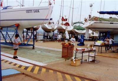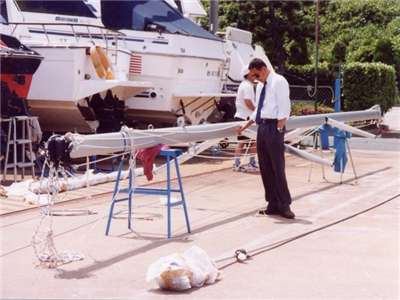 カティーサークの造船風景 内装造作 デッキの型にFRPを張っています クローゼットを上から見たところ 工程表 またデッキが乗っていない船を後ろから見た セイルの組み立て セイルの部品 セイルの縫い合わせ 陸路でやって来た キールはトラックの床に穴が空いている 大先輩がマストを点検中 小出君がウインチを取り付け もうすぐマストが立つよ メンバー整列 進水式 アフトバース(後ろの寝床) メインサロン クローゼット メインサロンを右舷前から コントロールパネルとチャートテーブル キッチン キッチンを前から見た コンロ(プロパンガス) マリントイレ 洗面所 待望のラットステアリング 船首 船内から外(後ろ)を見た 自分の船が走っている写真は数少ない トップページに戻る いいね:いいね 読み込み中…
